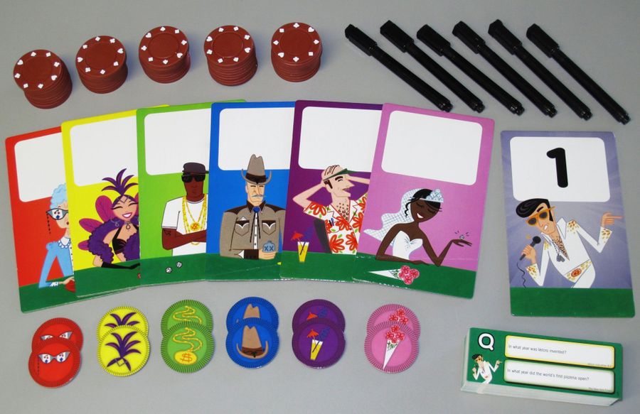 We got to Wits & Wagers first, since it’s simple to teach, easy to play, and it’s great to mix a group up and have different people work together. Not to mention the questions always spark some fun conversations among us. How tall is the Sistene Chapel ceiling*? How many countries border the Mediterranean Sea**? Did you know that 35 years passed between the invention of the hamburger and the invention of the hamburger bun? Crazy! And the best part is that you don’t have to know anything. You just have to bet on the people you think know best. That removes the biggest barrier to trivia games, leaving no one feeling stupid.