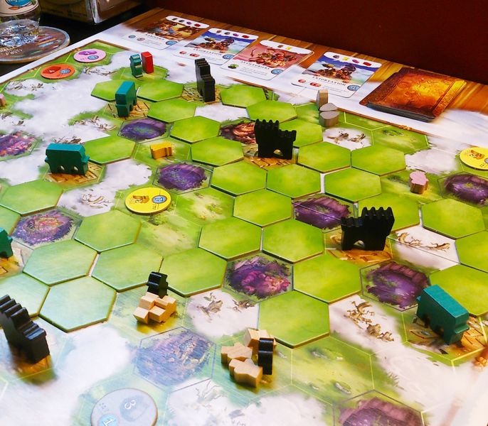In the briefest of descriptions, Terra Mystica is a dry euro game that has you settling some fantasy lands alongside friends and soon-to-be enemies by terraforming areas into more favorable terrain, building out to gain more income and player powers, and ultimately spending several turns trying to pull of a great strategic coup only to realize you’ve miscalculated your resource income and you’re short one crucial thing you need to pull it off.