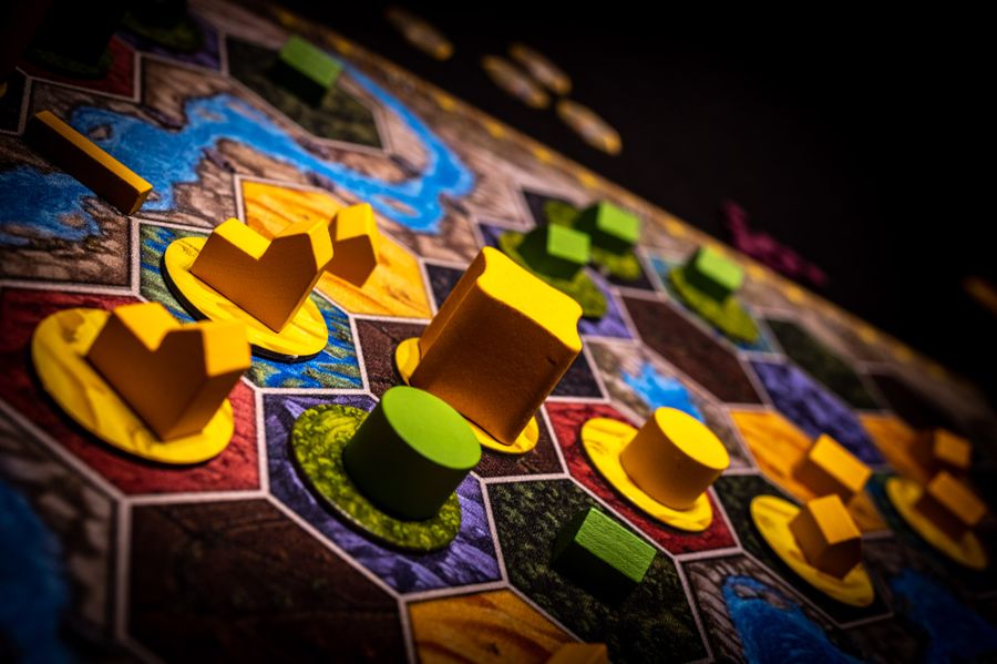 The second phase of the game, when all the map tiles are placed, sees you placing vikings one at a time onto the hex map to claim terrain.  One wrong move can net your opponents serious points that could have been yours if you had ONLY SEEN WHAT THEY WERE DOING ONE TURN EARLIER!